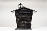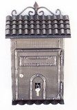 Cassetta postale artigianale in ferro battuto. colore nero opaco e sfumata a pennello col colore argento. con buca per posta sotto il tetto.