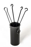 secchio porta attrezzi ferro battuto completo di attrezzi molle.scopetta in ottone .attizzatoio.paletta. diametro secchio 18cm alt.65cm.
