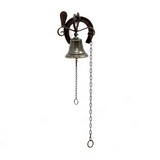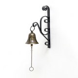 campana in ottone su braccio in ferro battuto dimensioni 14 +//3//Q- 7 +//3//Q- 30 cm