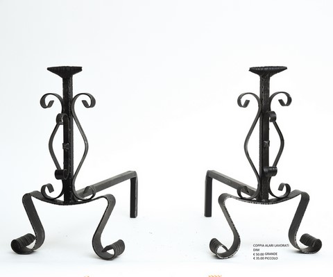 Coppia Alari Forgiati Lavorati Ferro Battuto Spessore 16mm Dimensioni Lung.40larg.23alt.39cm Peso 4kg "Piccolo"