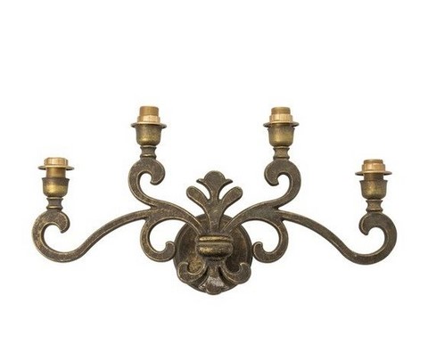 Applique. lampada da parete in ottone anticato brunito. modello giglio fiorentino a 4 luci. Potenza max 40W attacco E14. Compatibile con lampadine a risparmio energetico (lampadine non incluse) Made in Italy Disponibile anche l applique a 1 e 2 luci per arredare con stile la vostra casa Montaggio facile e veloce Da abbinare a ventoline in pergamena o tessuto Da un tocco di eleganza a qualunque ambiente Misure 11per50 altezza 26cm