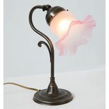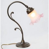 Lampada donna con virgola ottone stile tiffany con vetro saldato a piombo bocciolo rosa Dimensioni Altezza 40 cm diametro paralume 15 cm