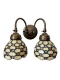 Applique in ottone a due luci palline gialle in Stile Liberty di colore beige con perle gialle.