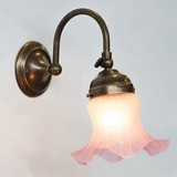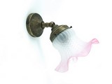 applique ottone snodata piccola con vetro sfumato rosa ideale a parete imensioni Placca a muro diametro 8 cm. sporgenza massima 14 cm