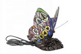 Lampada da tavolo. comodino Tiffany a forma farfalla variopinta. Base in resina color bronzo. Cavo dotato di interruttore.Misure 22per12 altezza 24cm