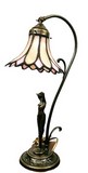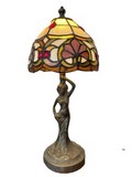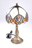 Base stilizzata Tiffany.Dimensioni: diametro base: 14 cm altezza totale: 48 cm larghezza archetto: 11 cm altezza archetto: 17 cm WATT: 60W Attacco lampadina: E27