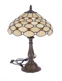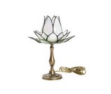 Lampada da tavolo stile Tifanny. completa di base in ottone. fior di loto color bianco.Dimensioni: Diametro base: 11 cm Diametro Paralume: 25 cm Altezza: 34 cm Caratteristiche Tecniche: ATTA…