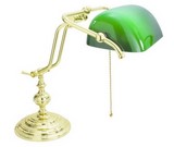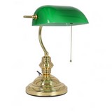 Lampada da scrivania ministeriale con telaio in ottone lucido snodato in 3 punti e paralume in vetro verde.Interrutore a pulsante sul cavo di alimentazione. Attacco E14 1x40w Misure: 15 x 9.…