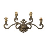 Applique. lampada da parete in ottone anticato brunito. modello giglio fiorentino a 4 luci. Potenza max 40W attacco E14. Compatibile con lampadine a risparmio energetico (lampadine non inclu…