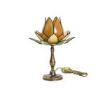 Lampada da tavolo stile Tifanny. completa di base in ottone. fior di loto color ambra.Dimensioni: Diametro base: 11 cm Diametro Paralume: 25 cm Altezza: 34 cm Caratteristiche Tecniche: ATTAC…