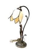 Lampada donna con virgola ottone stile tiffany con vetro saldato a piombo petali avorio Dimensioni Altezza 35 cm.diametro paralume 10 cm lunghezza 15 cm