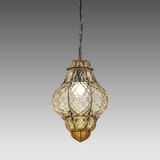 Lampadario vetro soffiato e ferro lavorato a mano da mastro vetraio veneziani Dimensioni Altezza: 30cm / Larghezza: 23cm colore ambra.