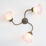 Plafoniera ottone 3luci liscia con vetri sfumati rosa Dimensioni Dimensioni: per 50 x 18 cm