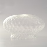 vetro trasparente con doppio foro diametro 21cm con attacco foro superiore diametro 5cm adattabile con porta lampade E27 con ghiera o molle foro inferiore diametro 11cn