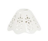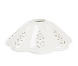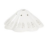 Paralume per lampada in ceramica a forma di cono traforato. di colore bianco.Misure diametro 17cm. altezza 7cm. diametro foro 4cm
